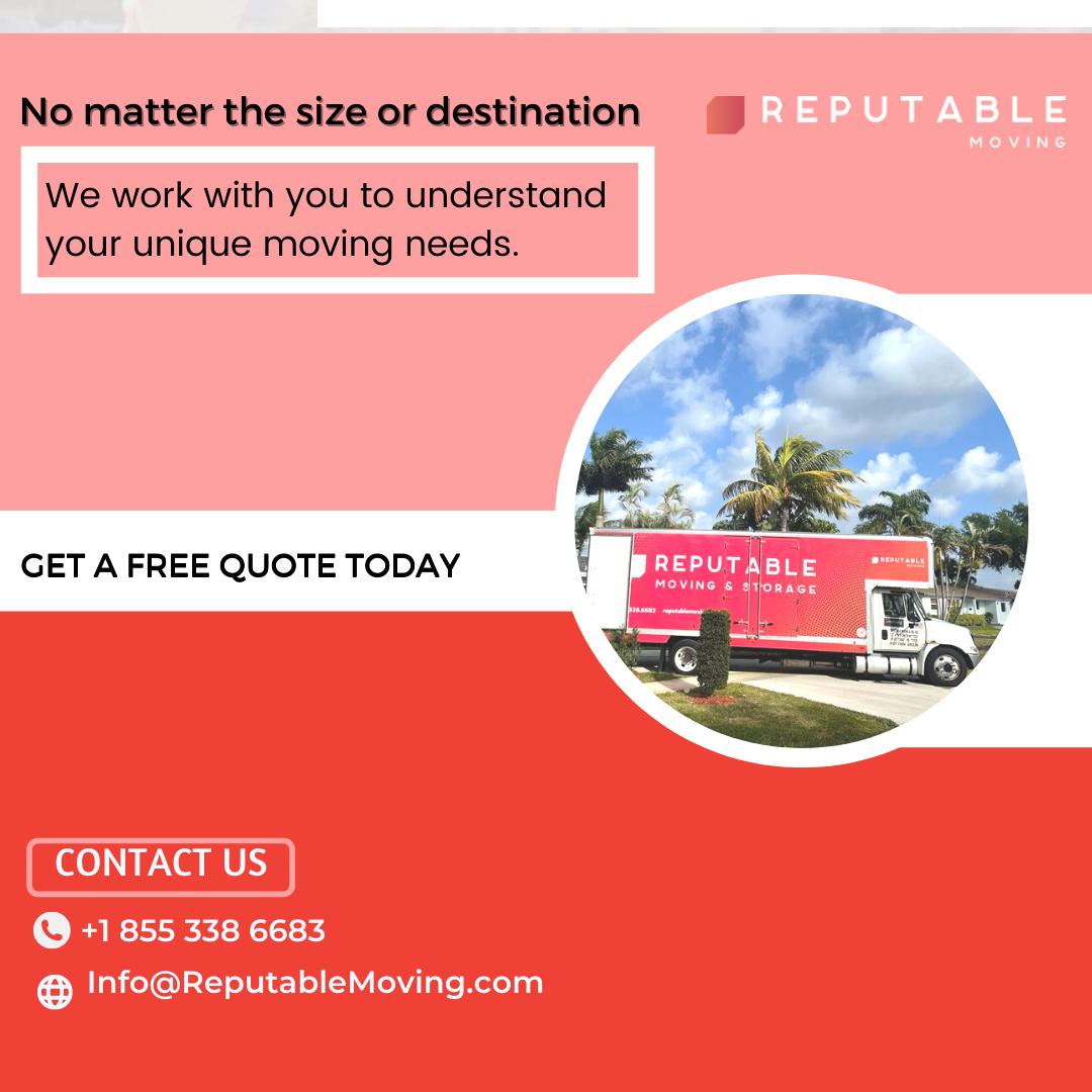 Reputable Moving understands that planning a long distance move means it is an upheaval of your life, and what a life changing event that it is. Whatever your long distance needs are whether it be intrastate New York to Florida or clear across the country. The Reputable Moving team will treat your life altering move with the care that it deserves.